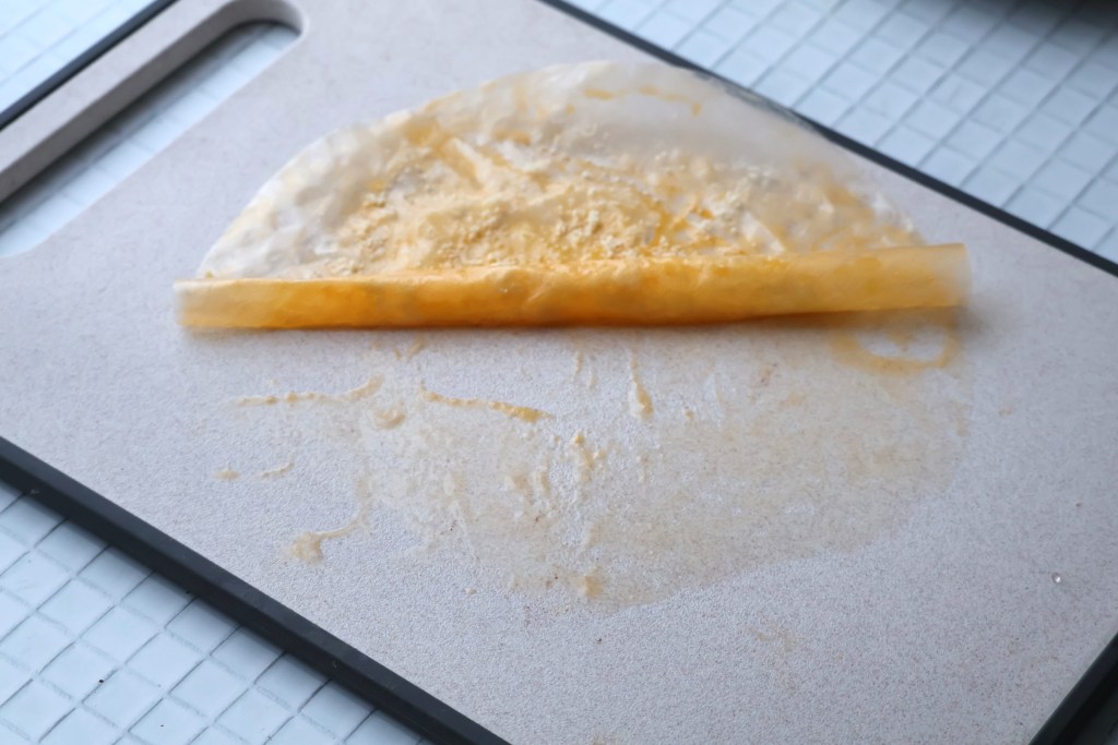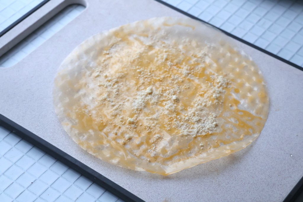 卵液に浸したライスペーパーを